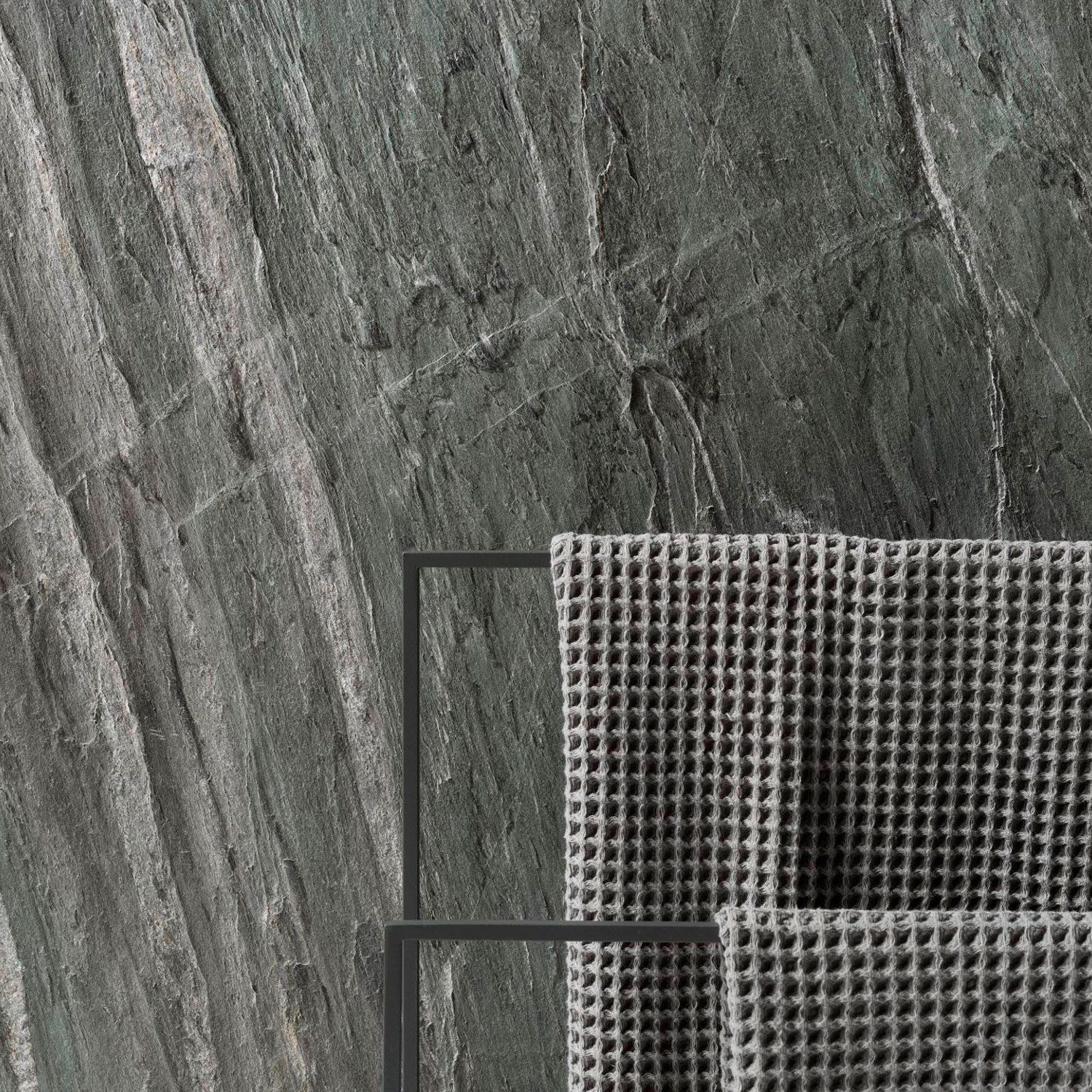 Este revestimiento flexible de la colección Airslate ofrece el carácter rústico-elegante de la pizarra con peso reducido. Su acabado mate y textura sutil permiten aplicarlo en muros interiores para aportar riqueza visual sin recargar.