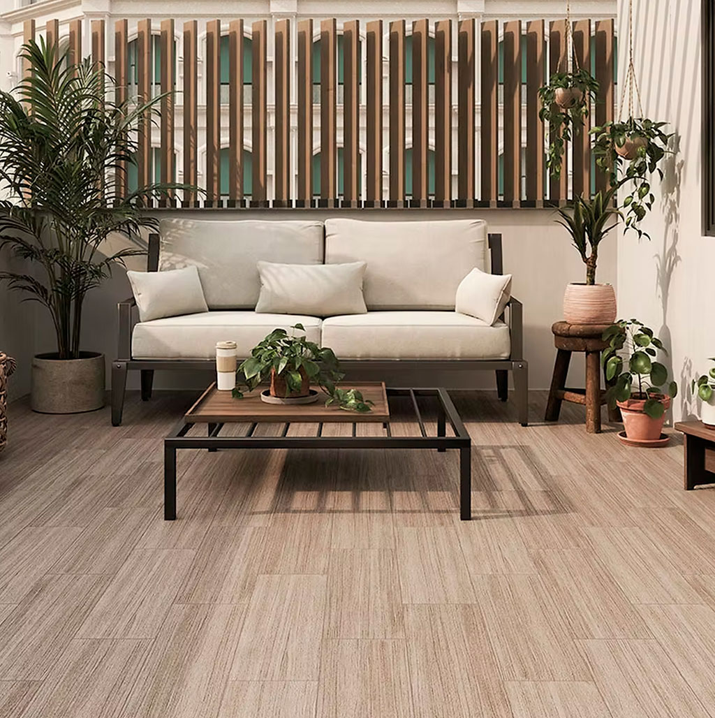Arizpe Haya es un piso cerámico de pasta roja tipo madera en formato de 20 × 60 cm.