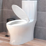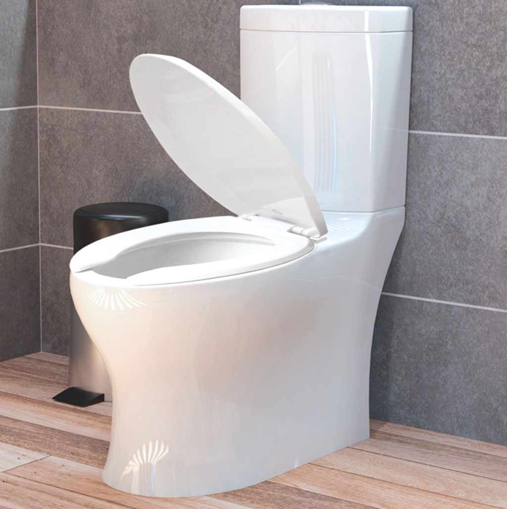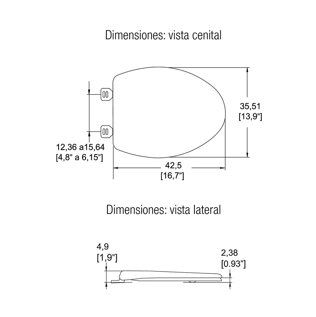 Asiento para sanitario Helvex con diseño elongado y cierre lento, que brinda mayor comodidad y evita ruidos o golpes bruscos al cerrar.