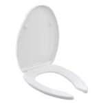 Modelo de asiento elongado con un perfil más fino y elegante. Hecho de plástico termoestable color blanco, mide alrededor de 45 × 36 cm. Cuenta con acabado brillante y ajuste universal para tazas alargadas, pensado para quienes buscan estética y funcionalidad.