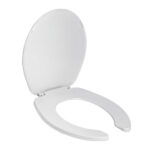 Asiento redondo para sanitario estándar, fabricado en plástico termoestable blanco con acabado brillante.
