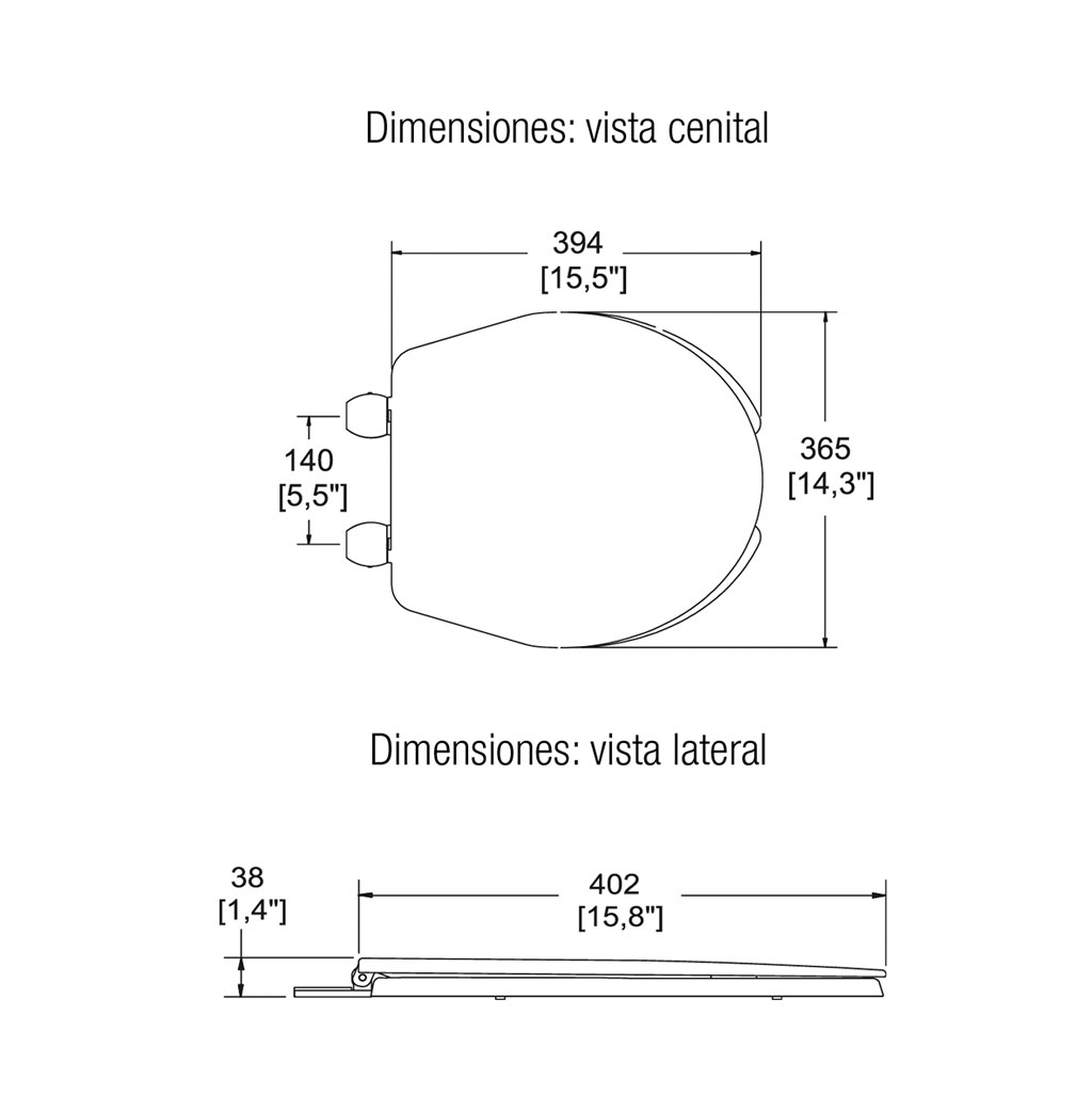 Color blanco, hecho en plástico termoestable con acabado liso. Ideal para baños de alto uso que requieren seguridad y resistencia.