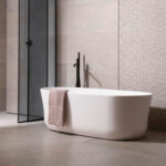 Bañera exenta de forma ovalada fabricada en Krion® Solid.