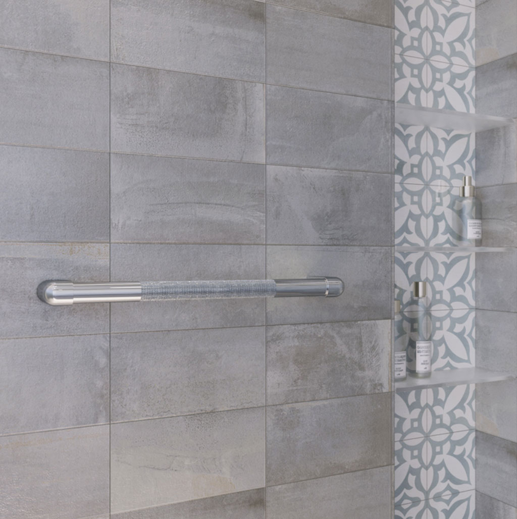 Barra Helvex recta para instalaciones de seguridad en baños, proporciona estabilidad y confianza en espacios residenciales o públicos.