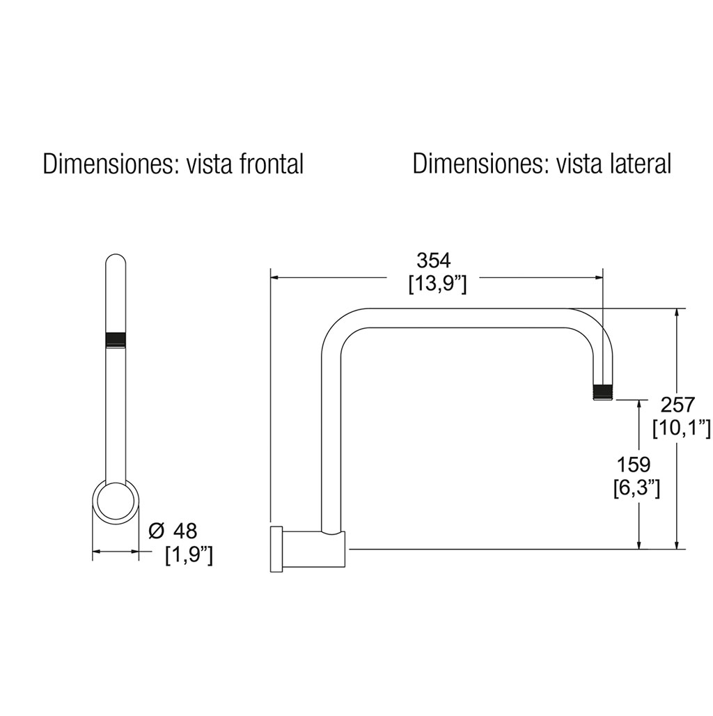 Brazo angular para regadera fabricado en latón cromado de alta calidad, con diseño curvo en forma de “L” que permite orientar el flujo de agua de manera más cómoda.