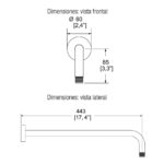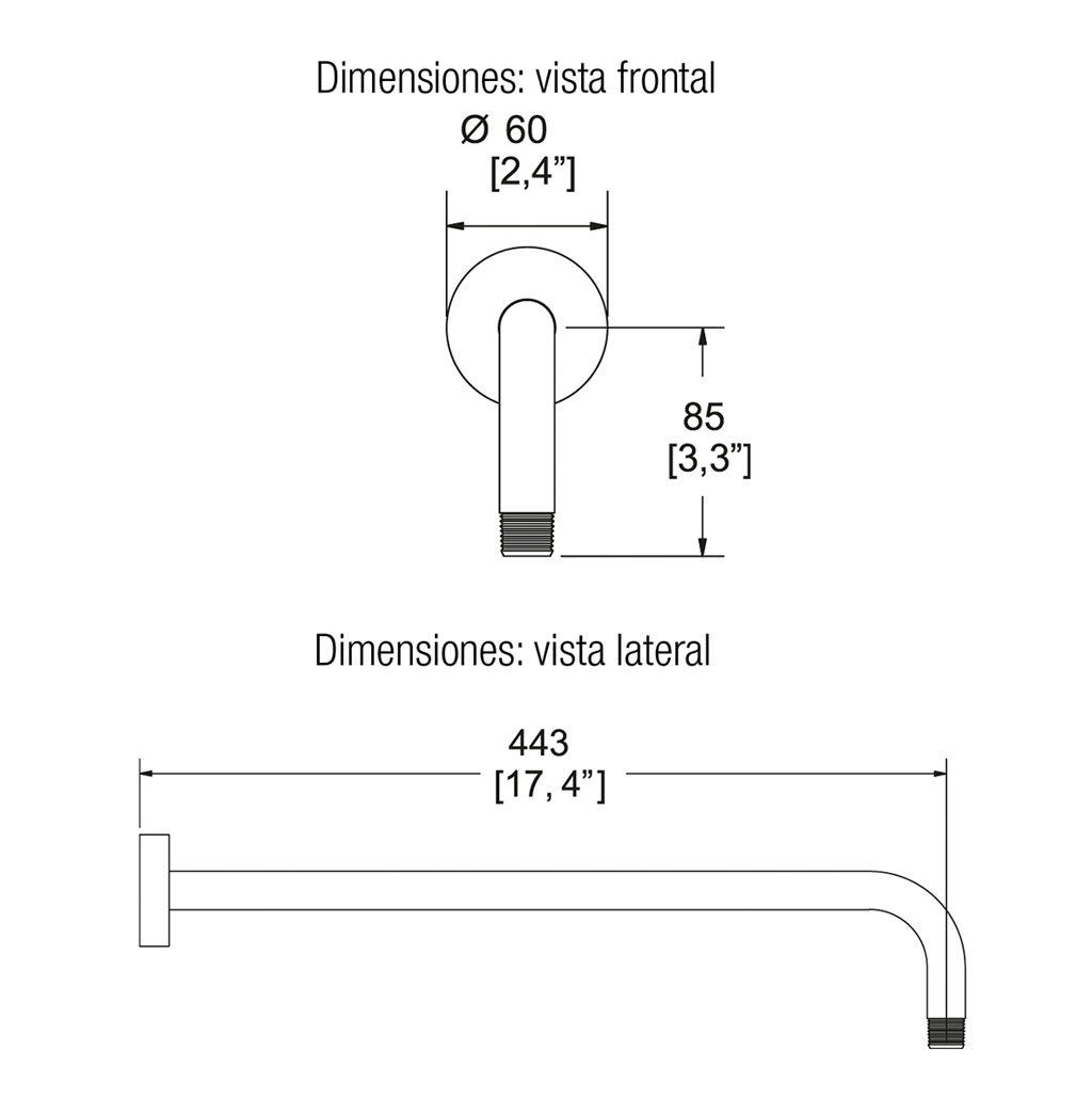 Brazo angular redondo para regadera, cromado y de diseño moderno.
