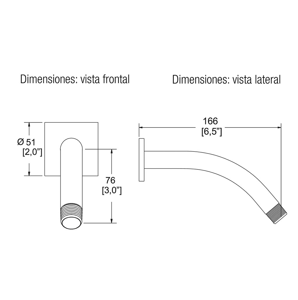 Este brazo recto con chapetón cuadrado está diseñado para instalarse en muro, compatible con regaderas modernas.