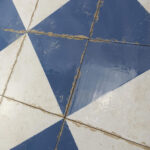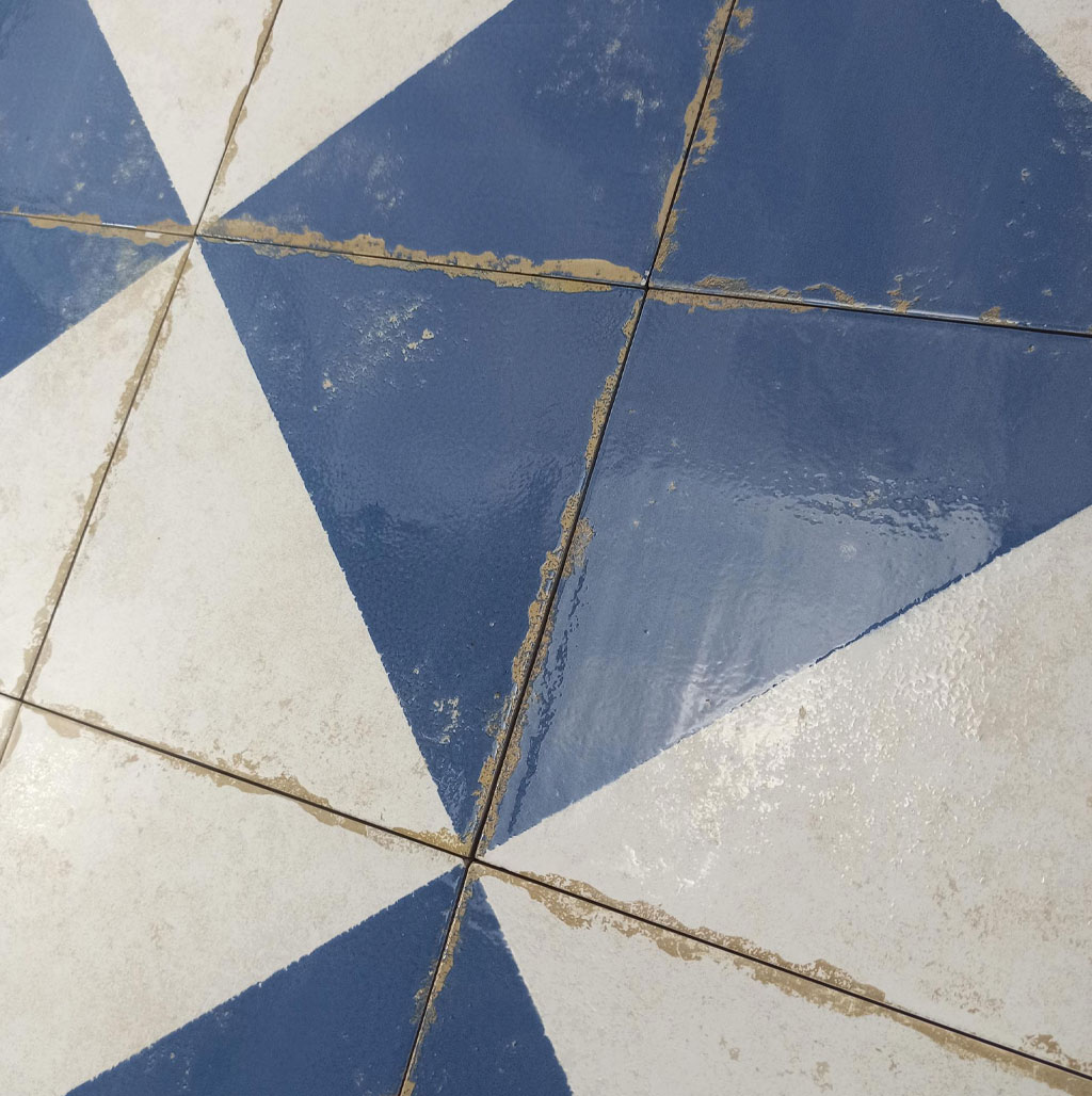 Su diseño sencillo pero impactante, dividido diagonalmente entre blanco y un azul profundo y luminoso, permite crear múltiples geometrías según su colocación, ofreciendo un sinfín de composiciones visuales.