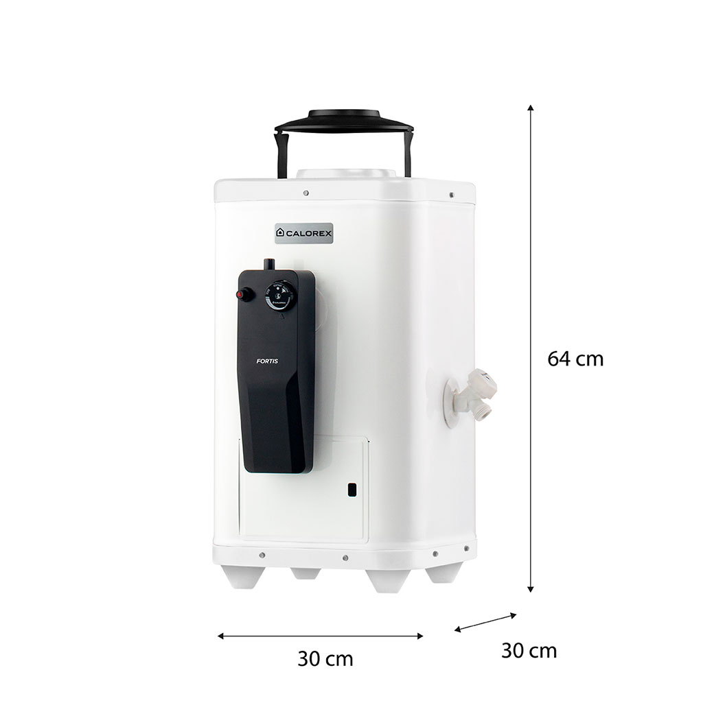 Calentador instantáneo compacto de 6 L/min (≈1 servicio), ideal para baños continuos sin tanque.