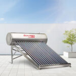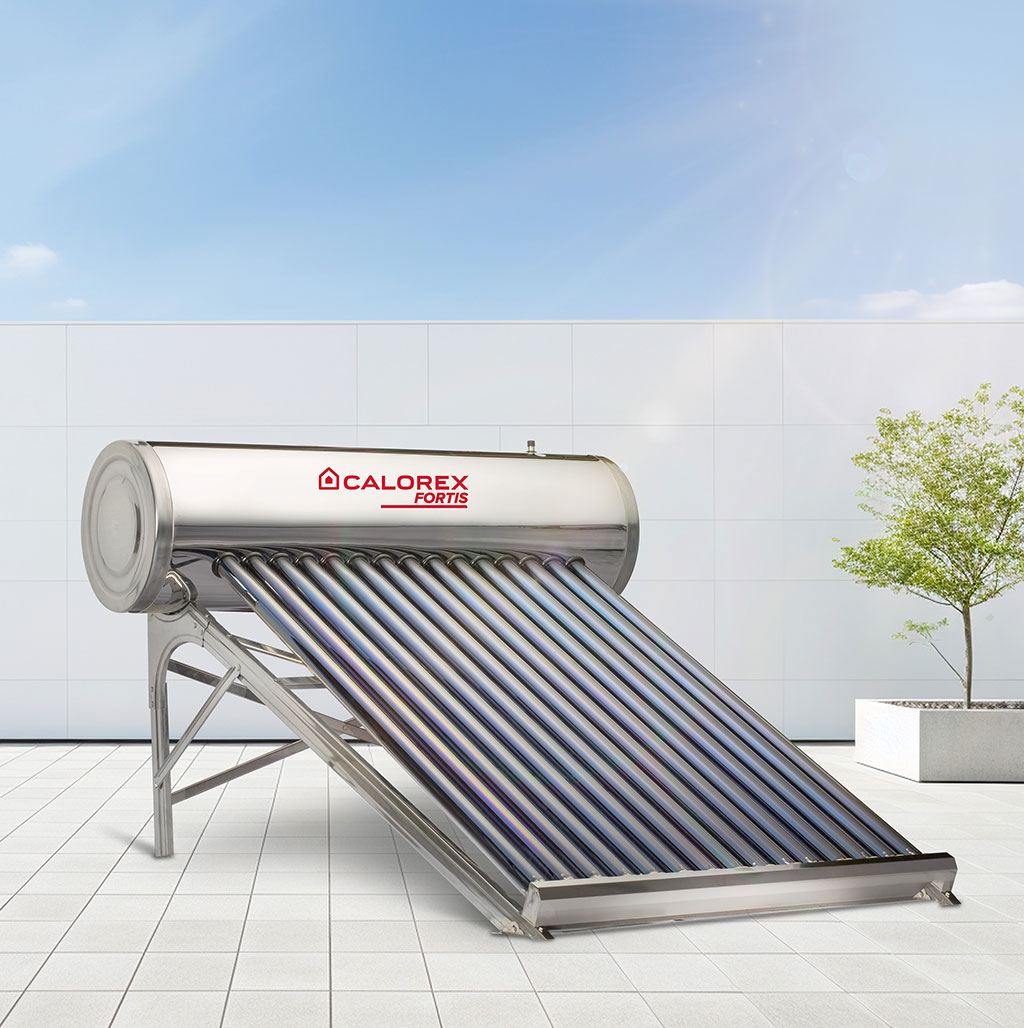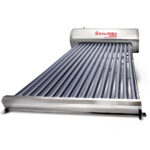 Calienta agua con energía solar (hasta ~173 L diarios, tanque de ~128 L), sin emisiones y con componentes duraderos (tanque en acero inoxidable, aislamiento en poliuretano, tubos de borosilicato). Incluye estructura de montaje, ánodo sacrificatorio y respaldo para baja presión; vida útil ~25 años.