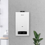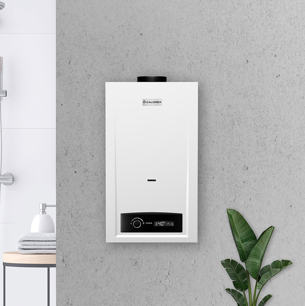 Calentador de gas LP con capacidad de 13 L/min, ideal para 2 servicios simultáneos.