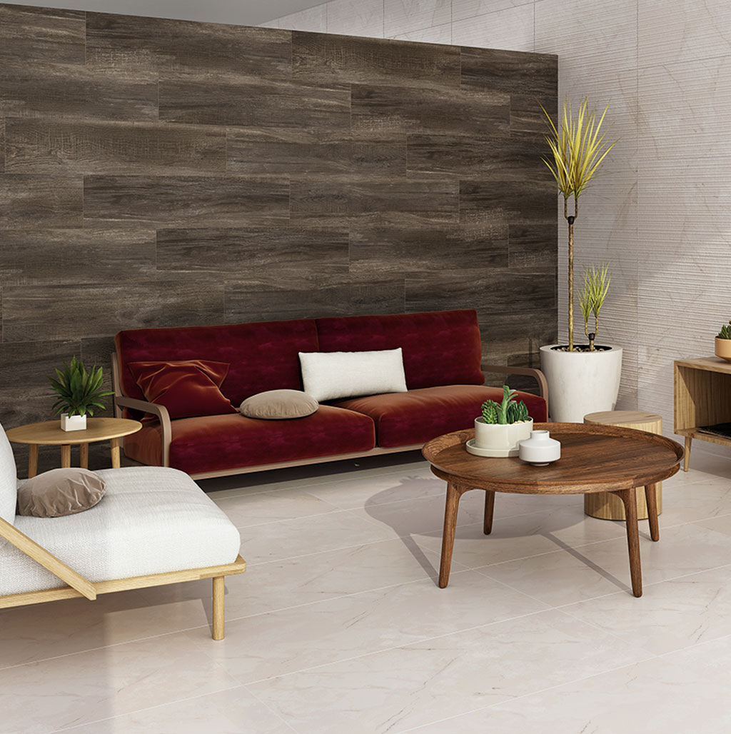 Su acabado mate rectificado aporta elegancia con un toque moderno. Perfecto para interiores como salas, cocinas, baños y áreas comerciales.