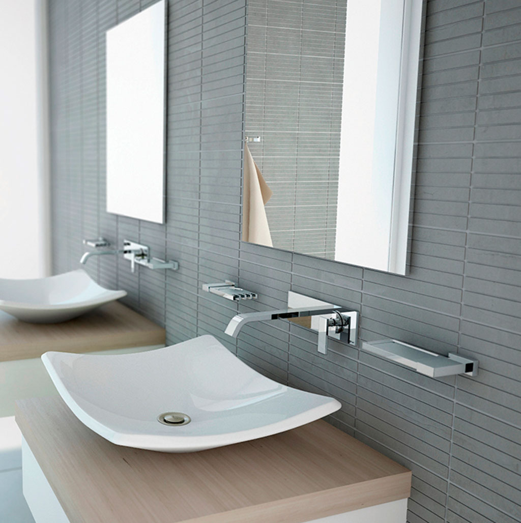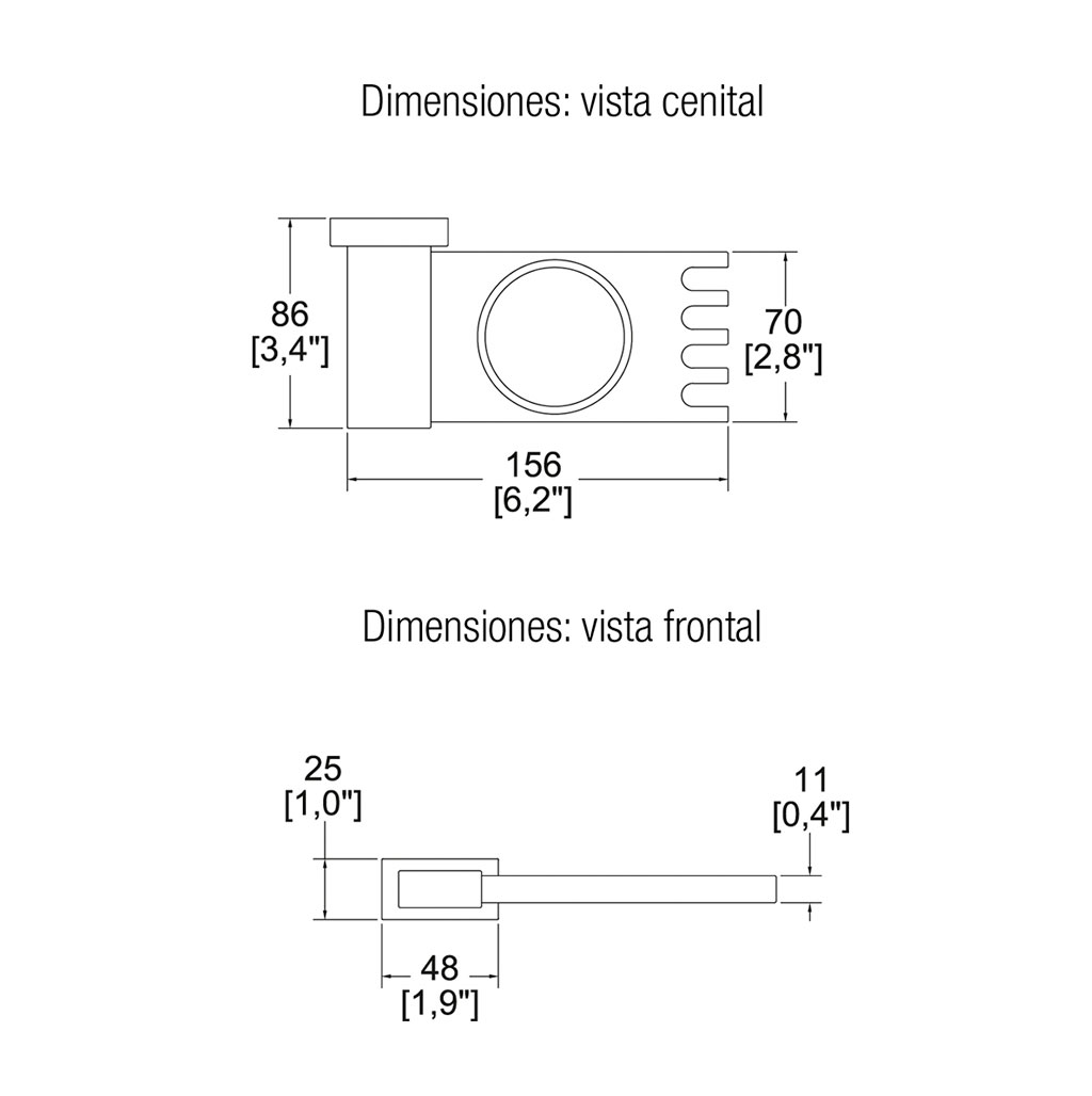 Cepillero Helvex Vertika fabricado en latón con acabado cromado, pensado para organizar cepillos de dientes en baños con estilo y orden.