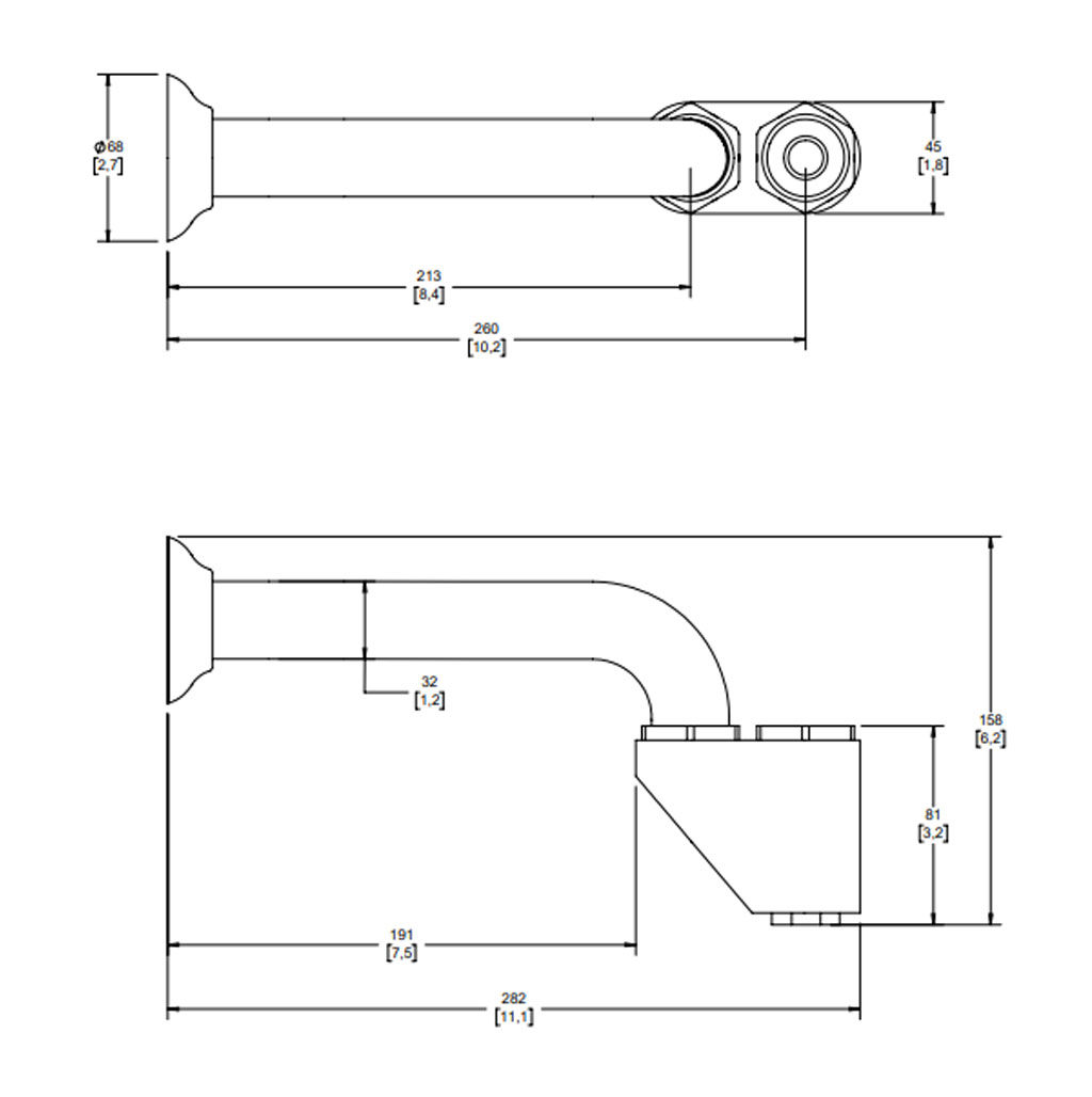 Céspol tipo “P” estándar en latón con acabado ébano, incluye registro de limpieza.