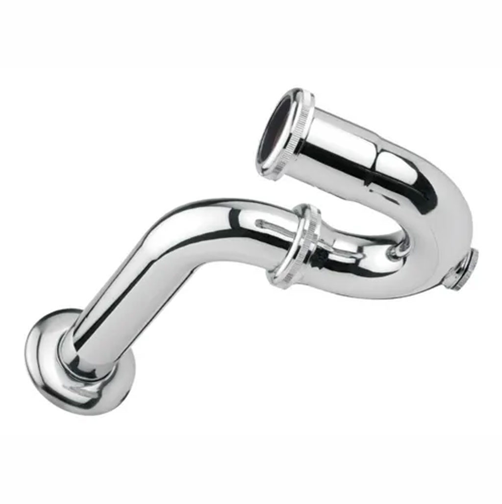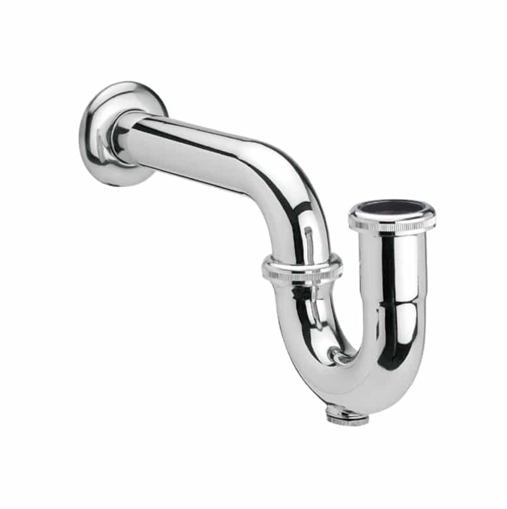 Céspol tipo “P” en latón con registro de limpieza para lavabo estándar. Acabado cromado brillante, conexión de 1 ¼″.