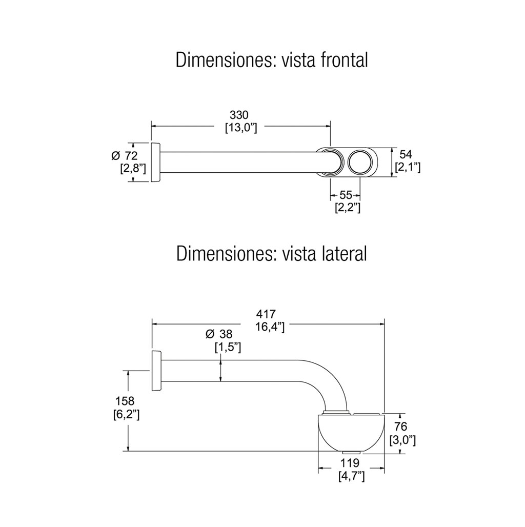 Fabricado en latón cromado, ofrece resistencia a la corrosión y facilita su mantenimiento gracias al registro integrado. Su diseño compacto permite una instalación estética y funcional bajo el mueble.