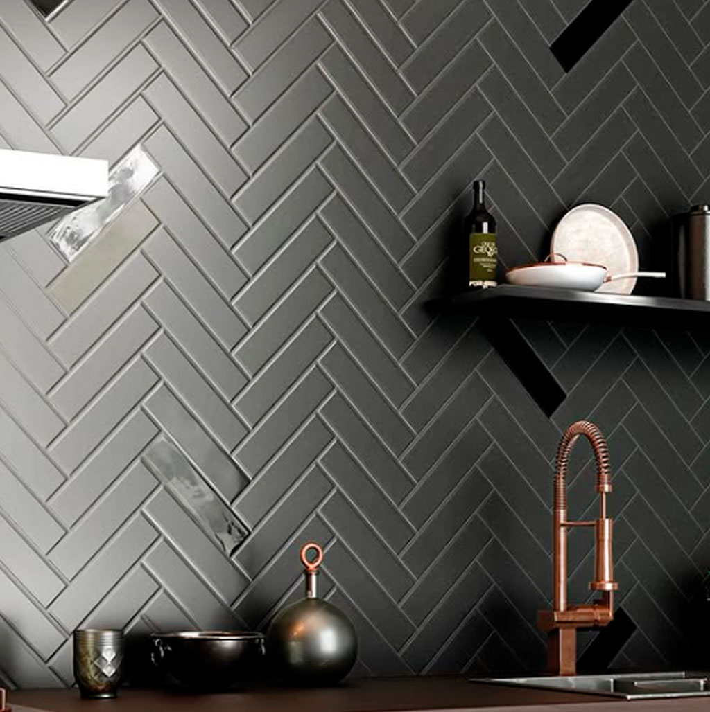 Charlot es un revestimiento cerámico de pasta cerámica tipo monocolor en formato rectangular de 28.3 × 7.2 cm, sin rectificar, con acabados mate y brillante, ideal para muros interiores residenciales y comerciales como cocinas, baños, salas, recámaras, comedores, pasillos, restaurantes, cafeterías y bares.