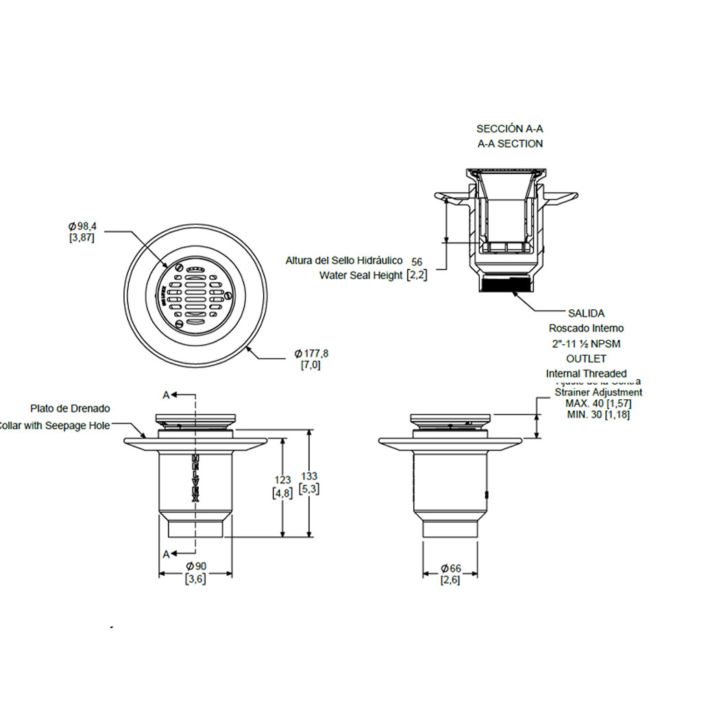 Diseñada para drenaje en entrepisos delgados, incluye sello hidráulico que previene malos olores.