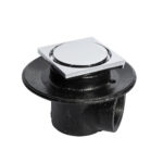 Coladera corta con salida lateral simple, fabricada en acero o hierro, diseñada para drenajes puntuales en lavaderos o pisos auxiliares.