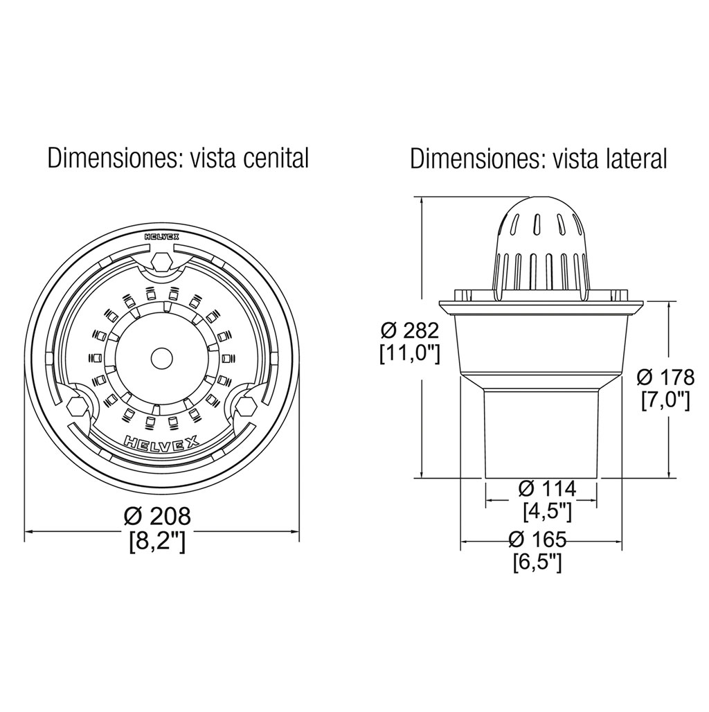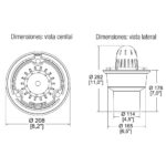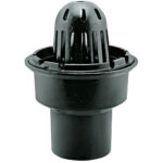 Coladera robusta para azotea con cuerpo y cúpula de hierro fundido pintados, incluye canastilla removible para sedimentos y marco para impermeabilización.