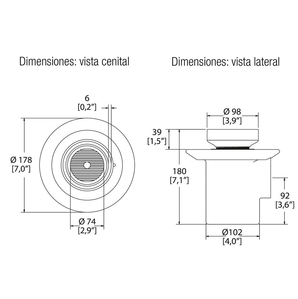 Coladera de desagüe con inserto desmontable.