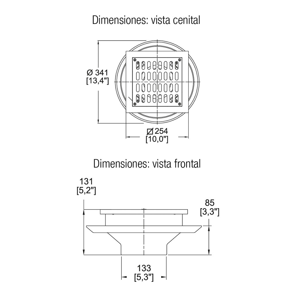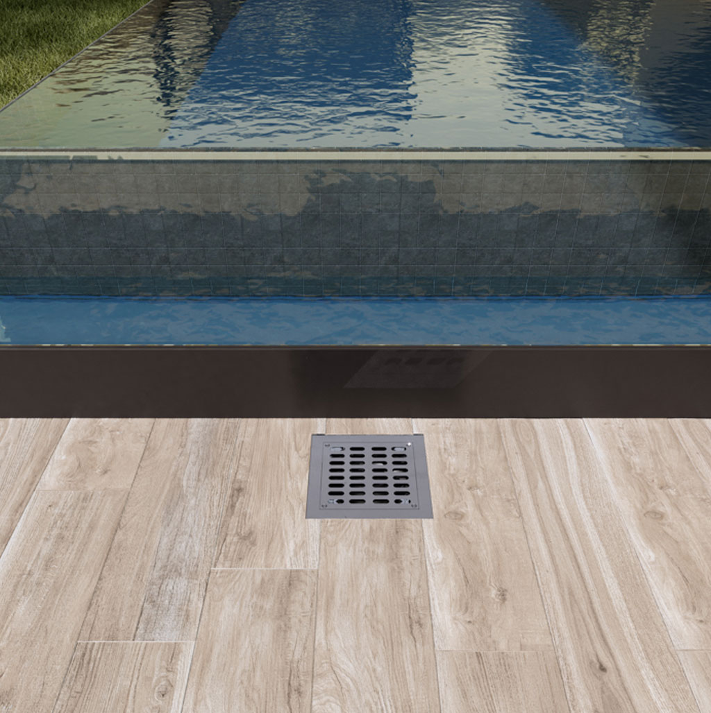 Coladera Helvex cuadrada de alta durabilidad, perfecta para áreas húmedas que requieren un drenaje confiable y diseño funcional.