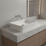 Mecanismo tipo “push” con rebosadero, acabado negro mate, sistema clic.