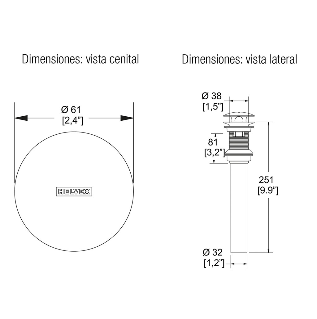 De latón cromado. La forma redondeada optimiza descarga y estética, diseñada para lavabos modernos.