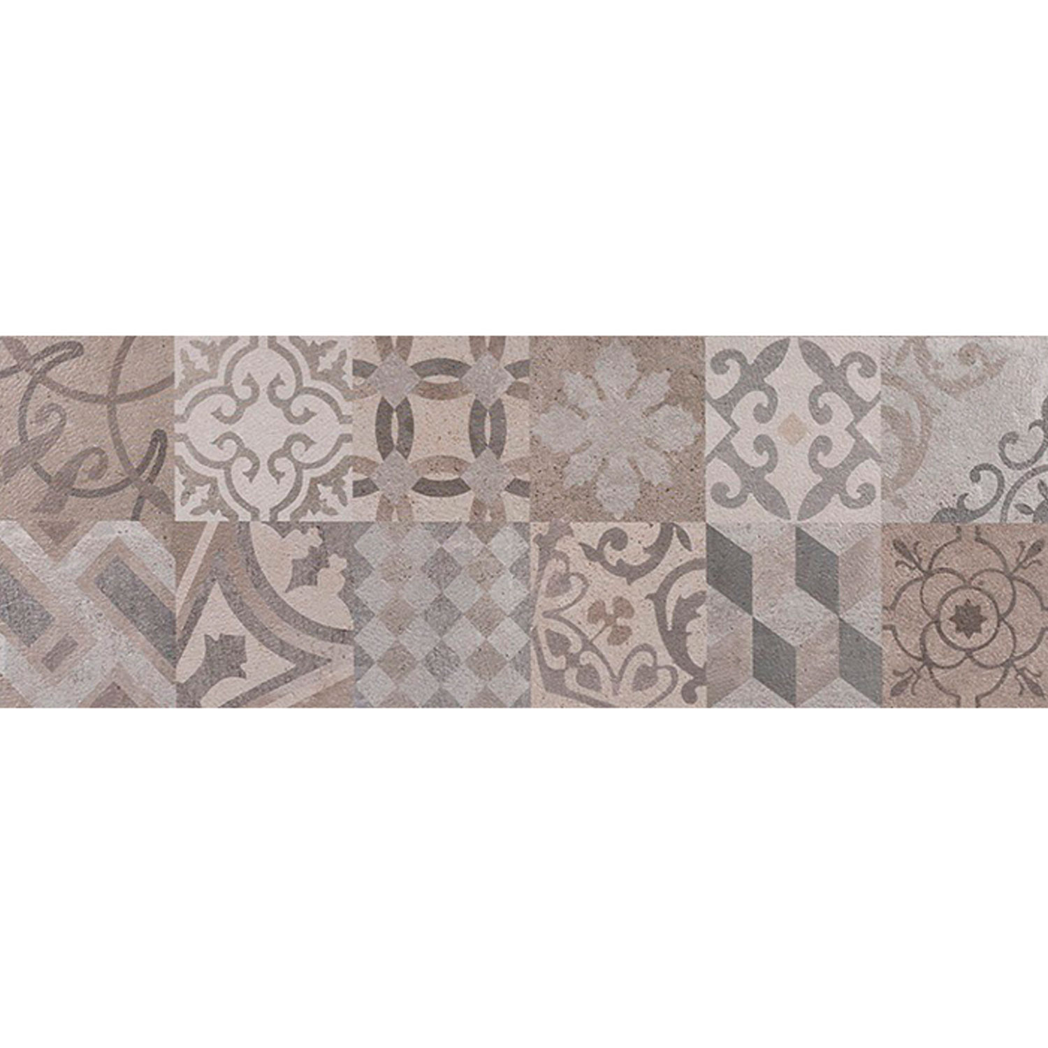 Revestimiento cerámico rectificado con efecto hidráulico “Antique”, formato 33,3 × 100 cm.