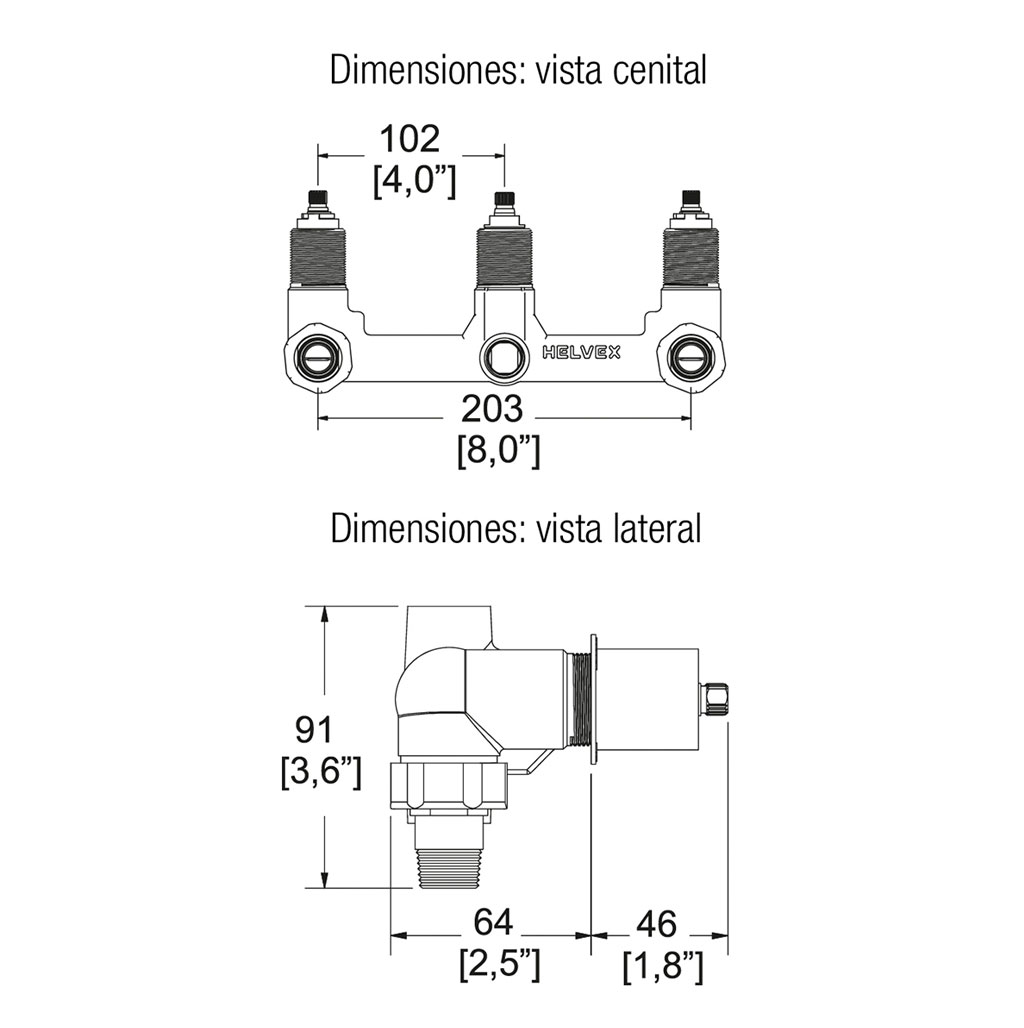 Incluye tres válvulas cerámicas en cuerpo de latón. Ideal para controlar paso y mezcla de agua en baños integrales, sin chapetones, con estética contemporánea.