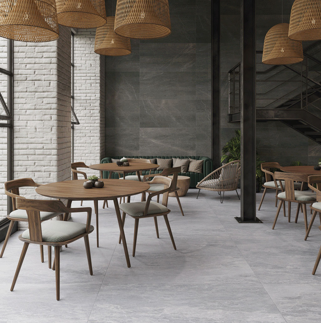 Tiene un acabado mate rectificado que ofrece un estilo moderno y sofisticado. Es ideal para interiores como salas, cocinas, baños, y también para fachadas o muros decorativos.