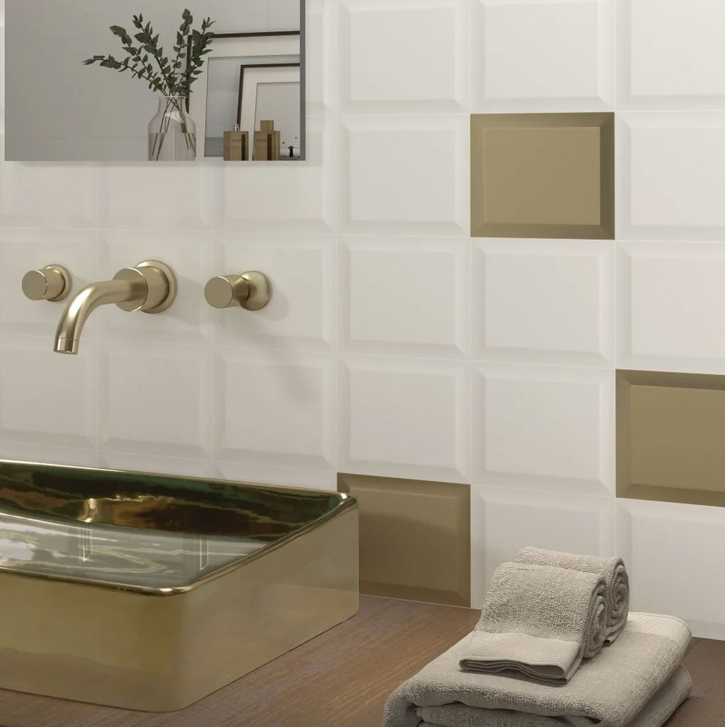 Dune presenta forma bianco bisel, un delicado azulejo en forma de bisel.