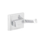 Gancho doble de baño en acabado cromo, diseño clásico, dimensiones aproximadas 4.8 × 5 × 5.6 cm.