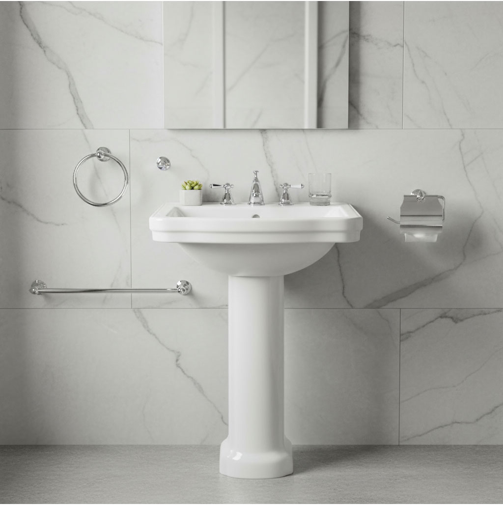 El Gancho Doble URREA 306 es un accesorio para baño con doble punto de colgado, útil para toallas, batas u otros objetos.