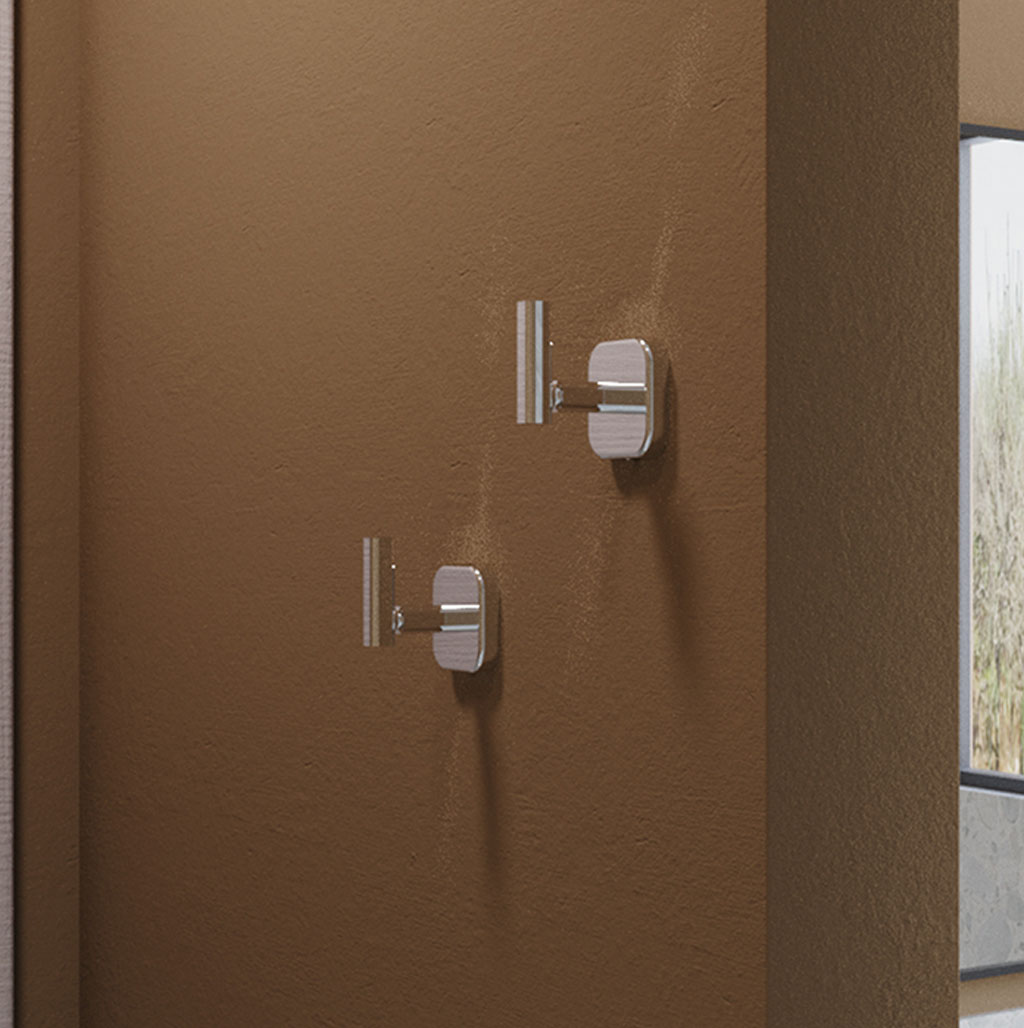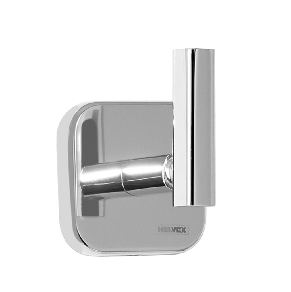 Gancho simple en latón cromado que permite colgar toallas, batas o accesorios pequeños. Se instala de manera oculta y armoniza con los demás elementos de la línea Piazza.