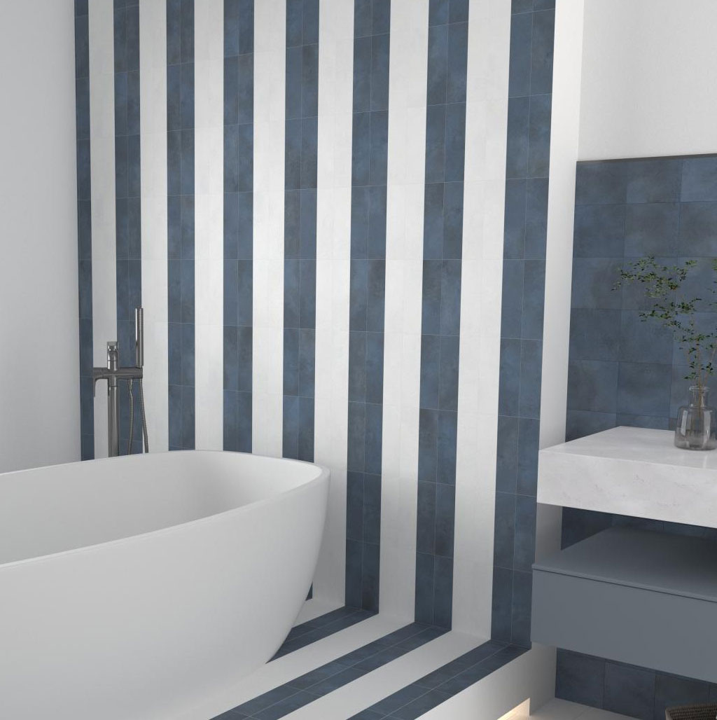 Azulejo porcelánico bullnose en formato 14,7×14,7cm con borde redondeado.