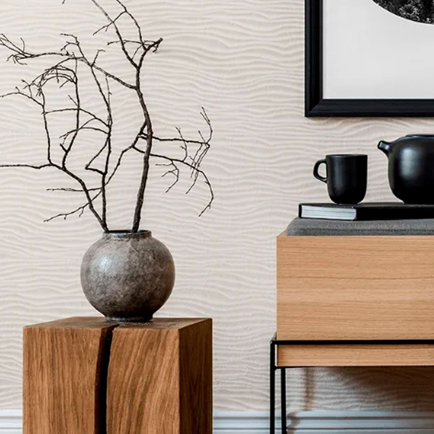 Su estética evoca texturas de hormigón o cemento con un toque elegante, pensada para interiores modernos que busquen un acabado neutro con carácter arquitectónico.