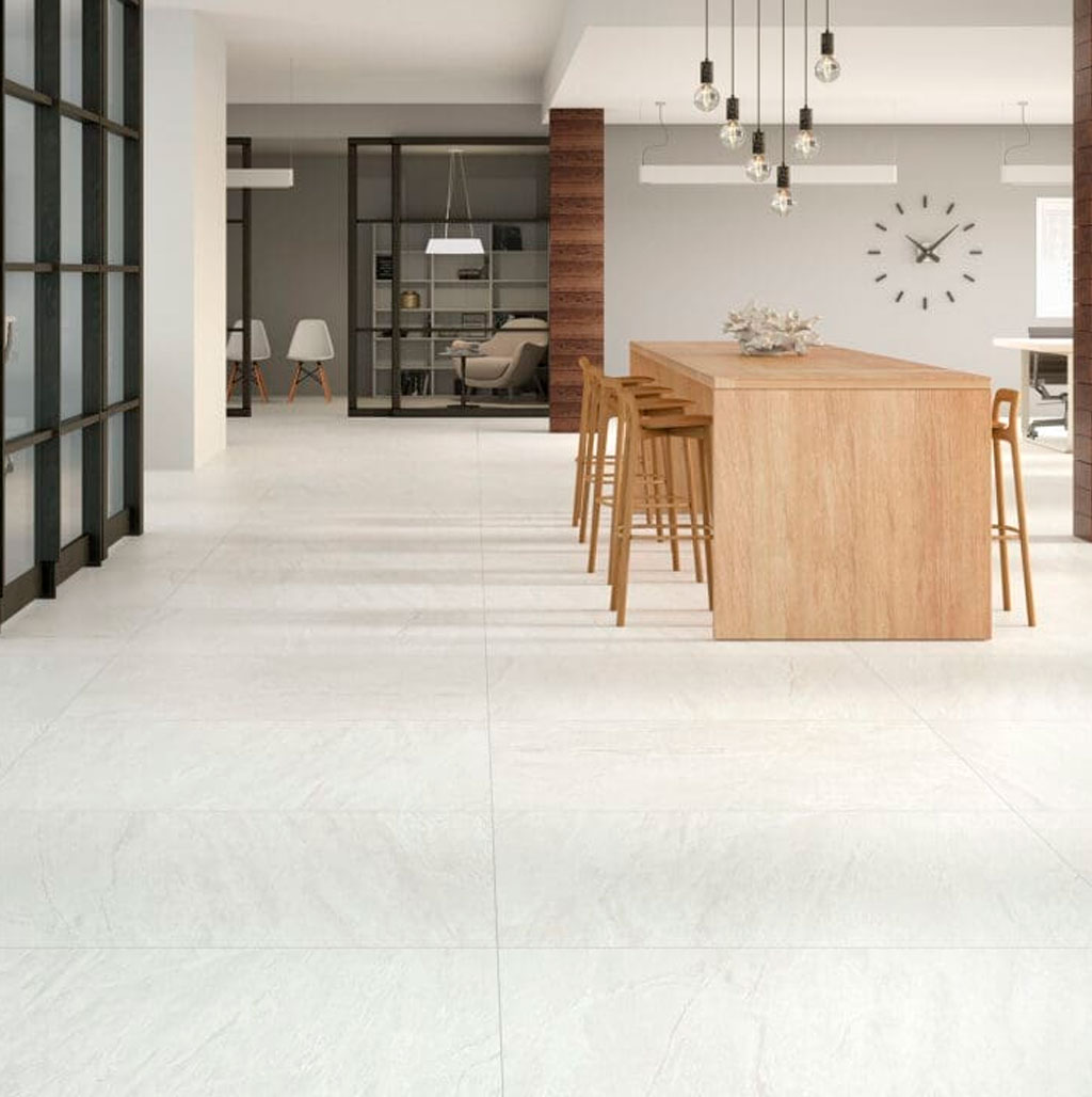 Helsinki es un recubrimiento cerámico de pasta super gres tipo piedra en formato 60 × 120 cm rectificado, con acabado mate antirreflejante y antideslizante, ideal para pisos y muros en interiores y exteriores residenciales o comerciales con alto tráfico.
