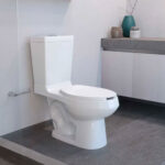Inodoro con líneas suaves, fabricado en cerámica blanca brillante que facilita la limpieza.
