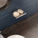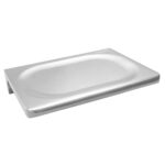Jabonera Helvex de la línea Access con diseño práctico para todo tipo de usuarios, disponible en cromo (ACC-108) o epóxico blanco (ACC-108-EB), ideal para baños adaptados.