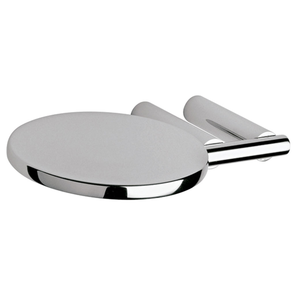 Jabonera de latón cromado, semi‑empotrada, con sistema modular para baño.