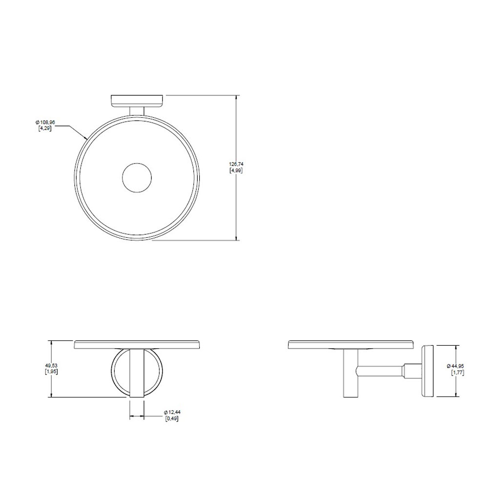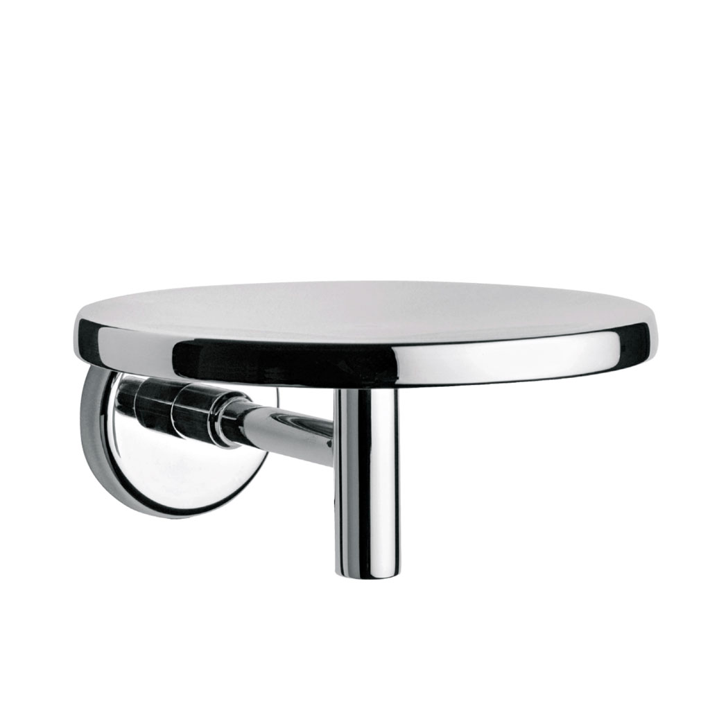 Jabonera minimalista de la línea Spacio, latón cromado con montaje oculto.