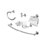 Juego de 5 a 6 accesorios clásicos en acabado cromo, fabricados en zamac, ideal para complementar el equipamiento del baño.