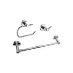 Juego de 3 accesorios de baño en acero inoxidable con acabado cromo, incluye sistema de sujeción metálico.