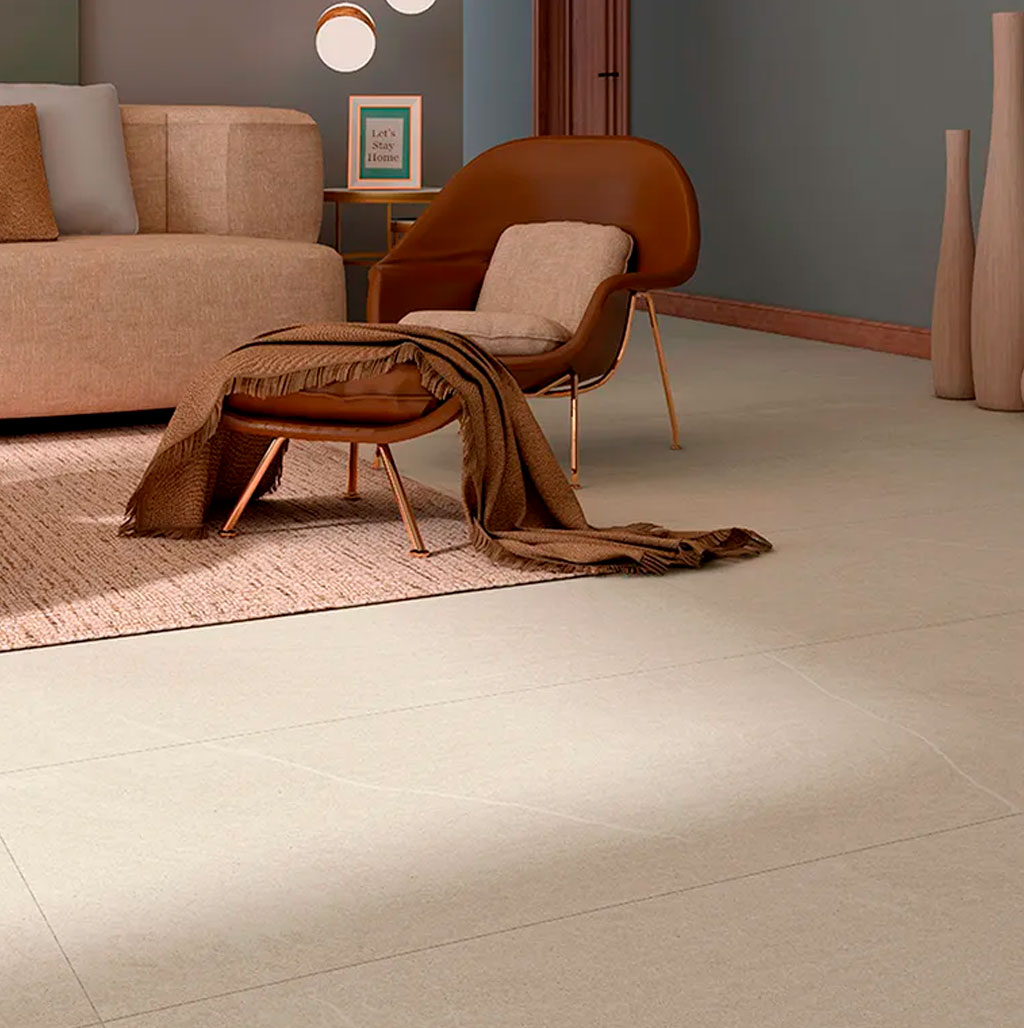 Kiel es un recubrimiento cerámico de pasta super gres tipo piedra en formato 60 × 120 cm rectificado, con acabado mate, ideal para pisos y muros en interiores y exteriores residenciales o comerciales.