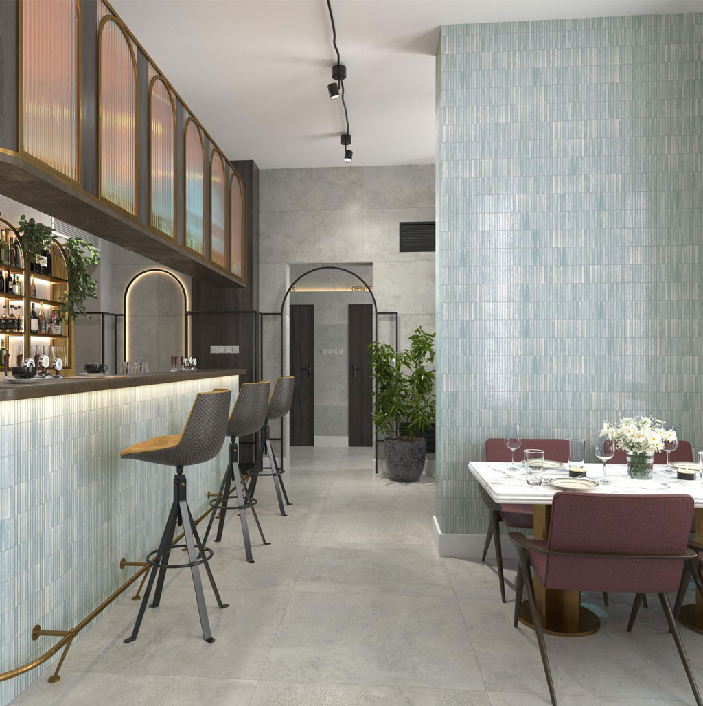 Azulejo porcelánico en una preciosa tonalidad azulada suave.