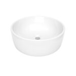 Lavabo de cerámica blanca de sobreponer, sin rebosadero, acabado alto brillo.