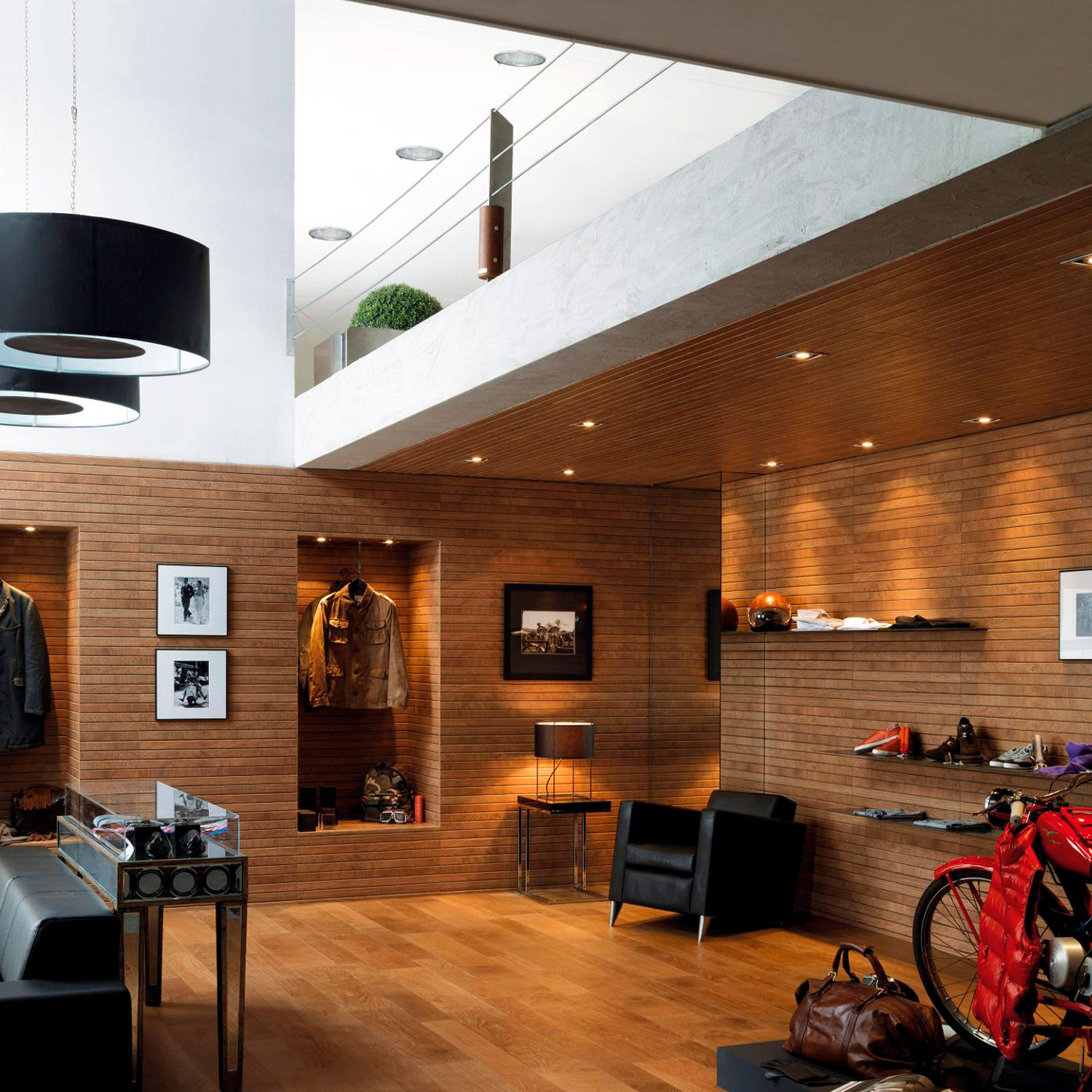 Su textura combina listones lineales muy finos para lograr un acabado estilizado, ideal para revestimientos interiores que buscan calidez y estética natural.