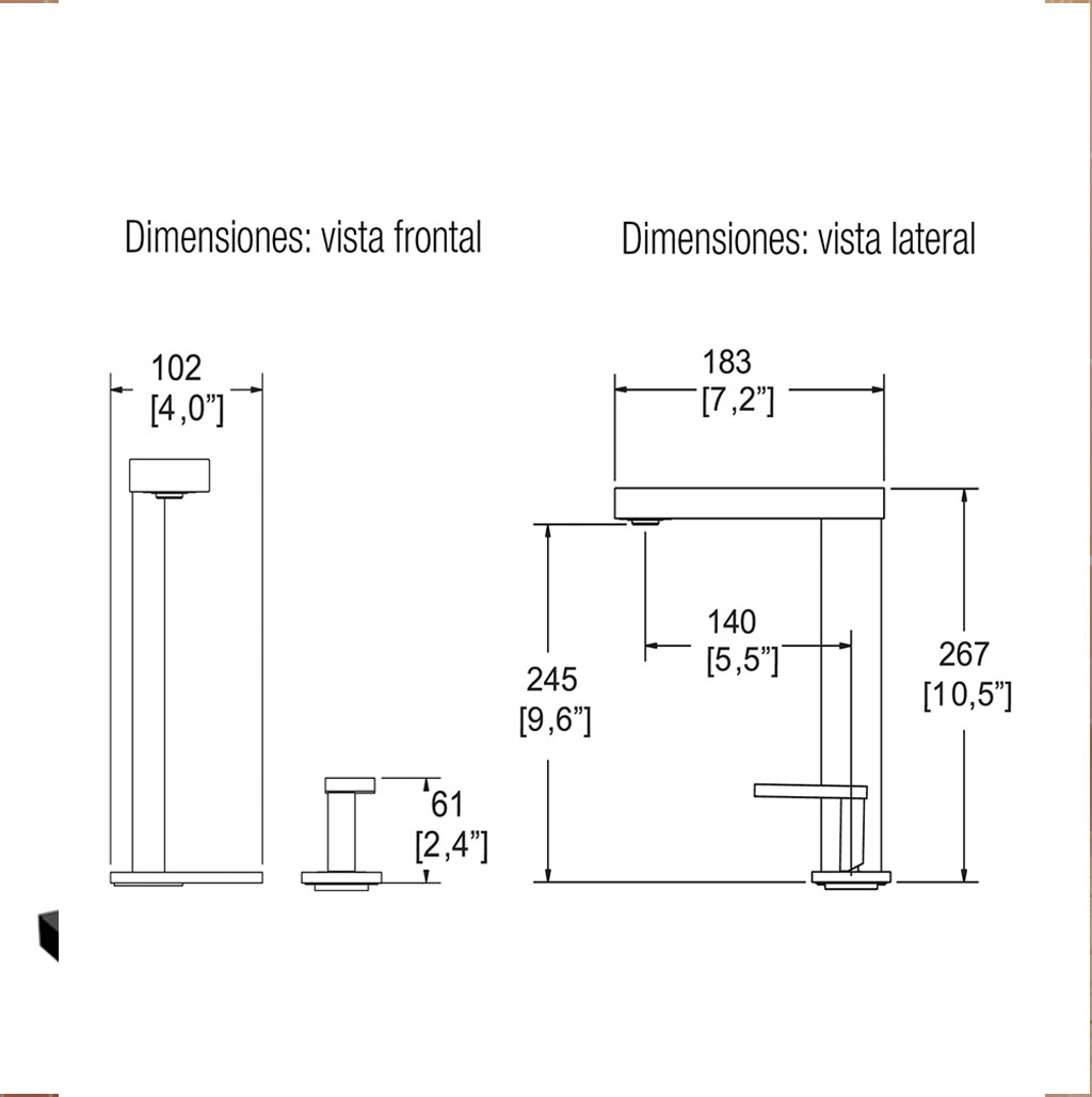 Para lavabos elevados, esta llave de cuerpo alto ofrece diseño elegante y fácil operación, disponible en cromo (E-949) o negro (E-949-EB).