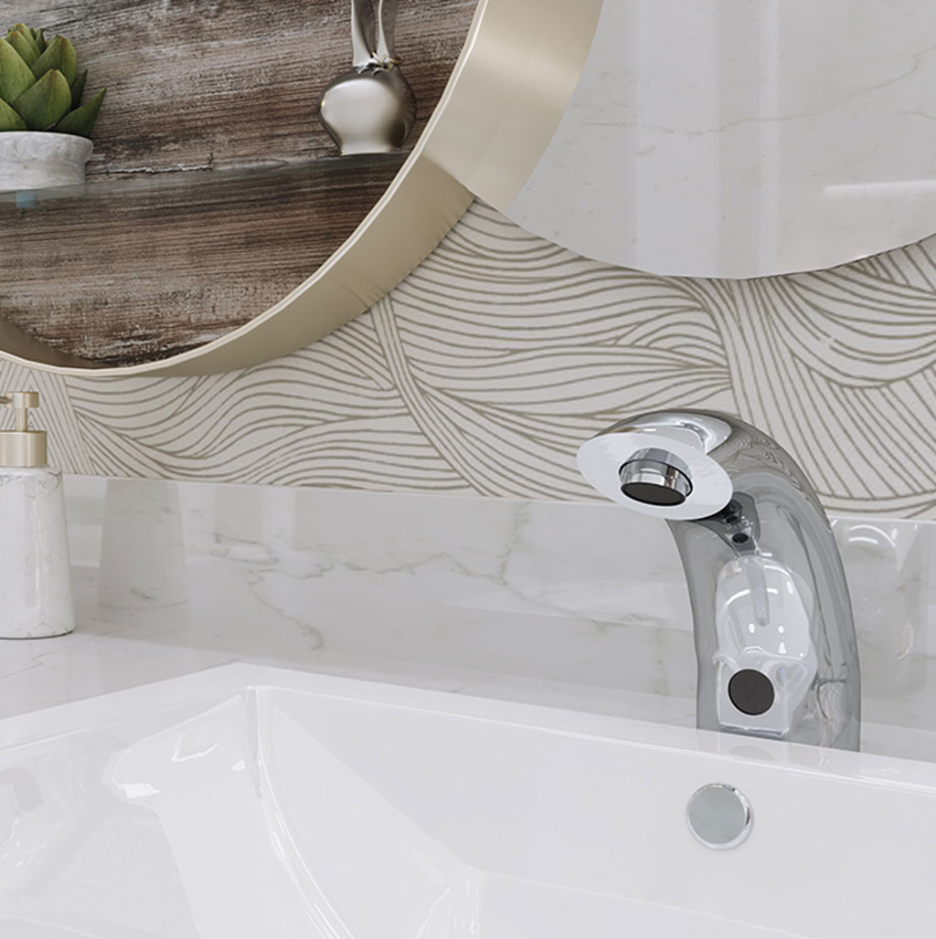 Grifo electrónico de lavabo con sensor, batería, diseño Argos, acabado cromado.